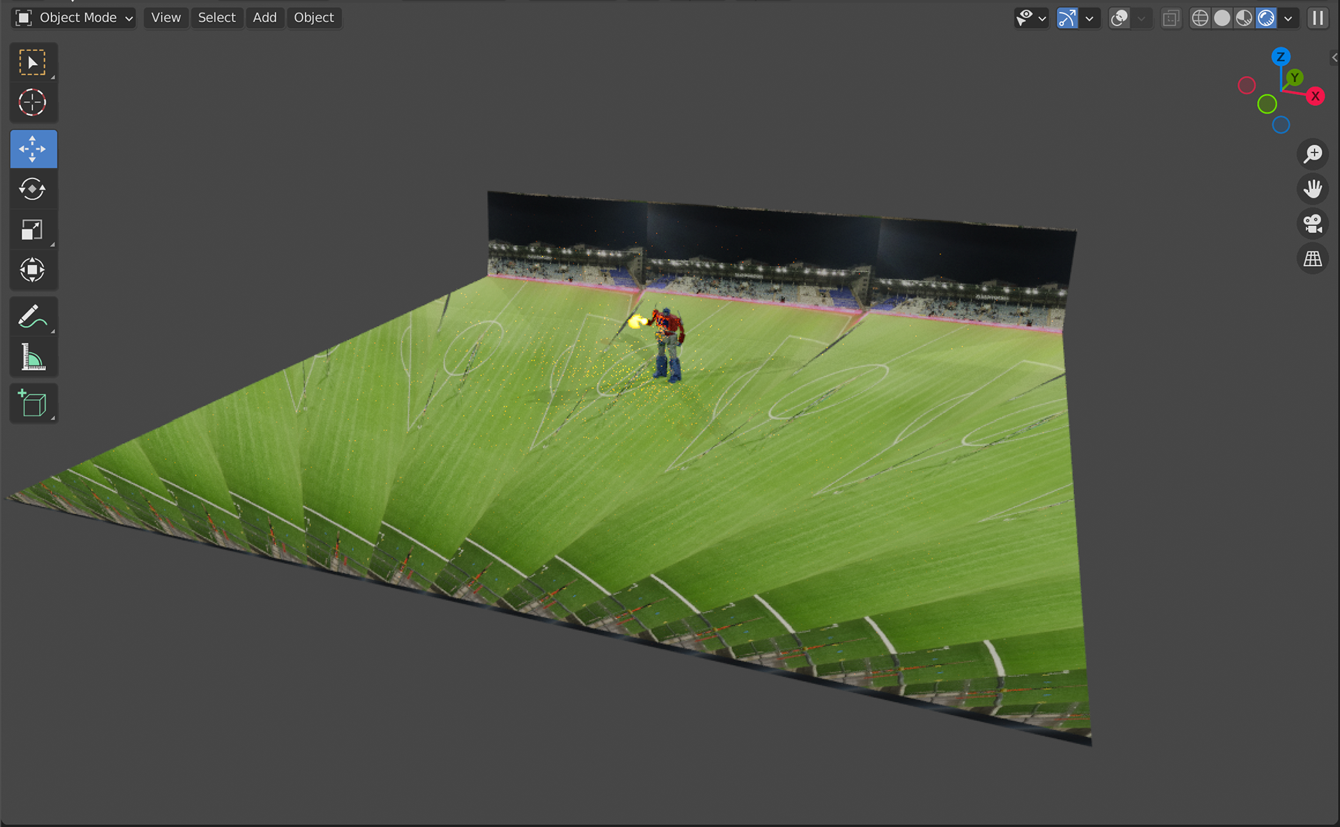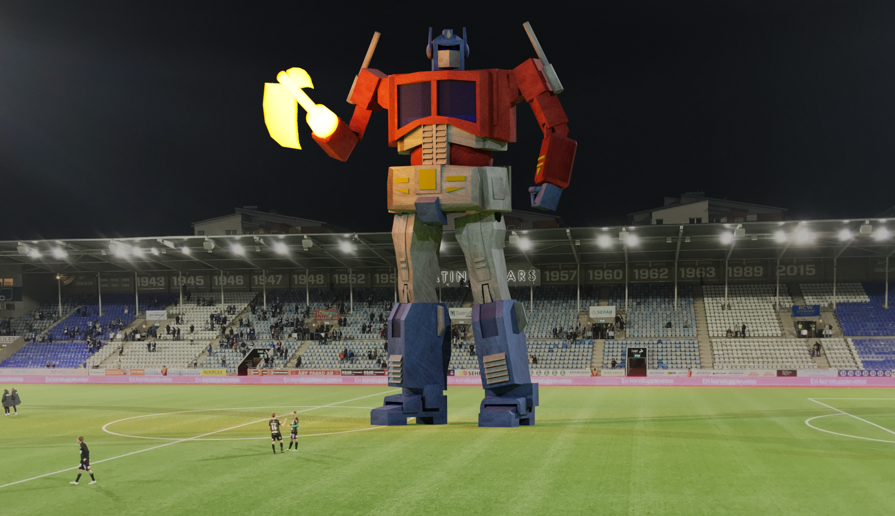 In this project for the 3D Graphics course, I set out to create a 3D scene that combined the assignment with one of my personal interests. Since I’m a big fan of football - especially IFK Norrköping - I decided to place a 3D-modelled version of Optimus Prime on the pitch at Platinumcars Arena. The main challenge was to make the model fit naturally into a real photograph from the stadium, particularly by matching the complex lighting and shadows created by the floodlights.